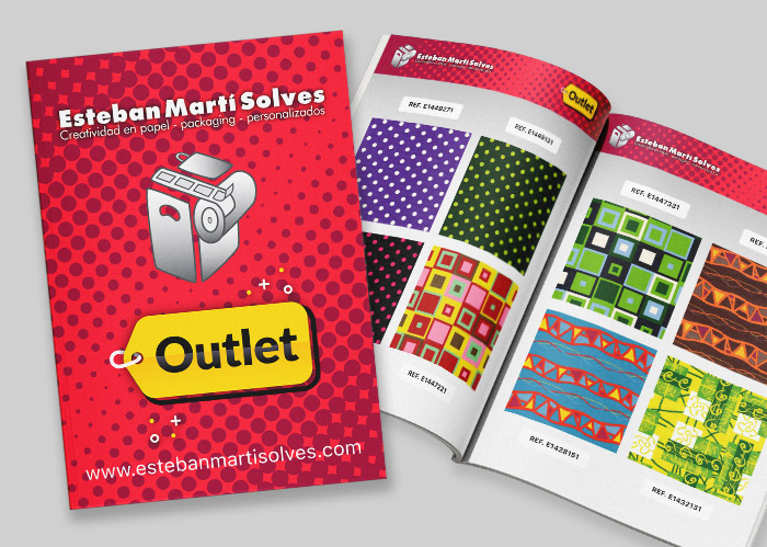 Catálogo de modelos de fabricación propia Outlet, varios modelos y papeles navideños incluidos.